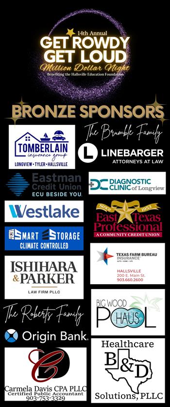 The Hallsville Education Foundation’s annual Get Rowdy, Get Loud fundraiser, presented by Patterson Chrysler Dodge Jeep Ram of Marshall and Richard & Amy Traweek, generated funding for innovative and creative grants for classrooms that were not covered by the regular operating budget, as well as dual credit course scholarships. Past grant winners were highlighted at the event with banners displayed throughout the venue, which were later distributed to the campuses to raise more community awareness about the Foundation and the creative ideas and projects it had funded for campus teachers during the annual "Pride Patrol."